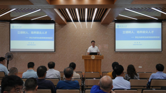 随后,学院组织全体教师集中学习了《中华⼈民共和国学位法》及学校研究生教育与学位管理相关⽂件,推动学位授予工作法治化、规范化。刘芳洋副院长结合学校⽂件修订要点,对《学位法》核⼼内容、学位论文评审程序、学籍管理、培养环节等方面进行重点解读,强调导师责任制、规范学位与研究生教育全过程管理。