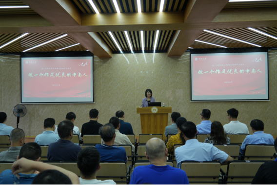 5月28日下午,华人直播 教职工大会在潇湘校区金贵楼420顺利召开,校纪委第二纪检监察室主任杨帆出席会议并作“一院一宣讲”教育培训,学院领导班子及全院教职工参会。