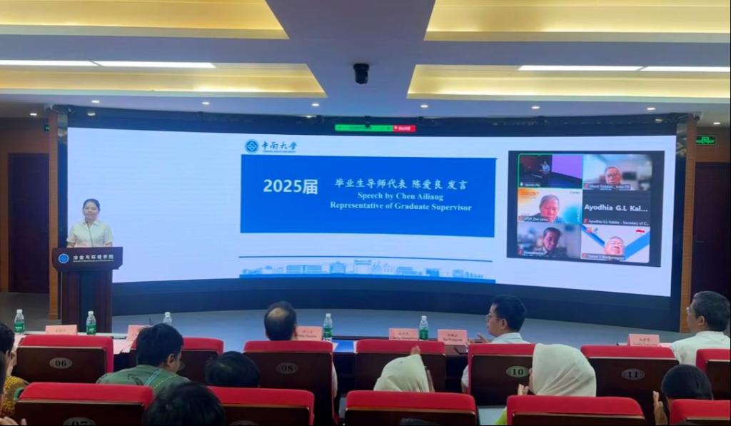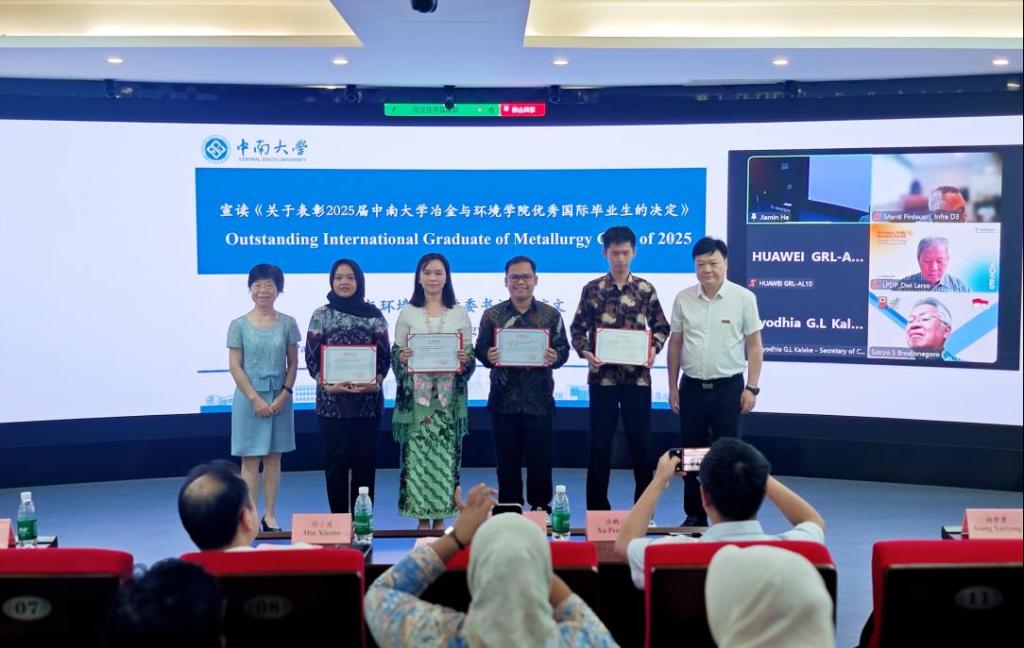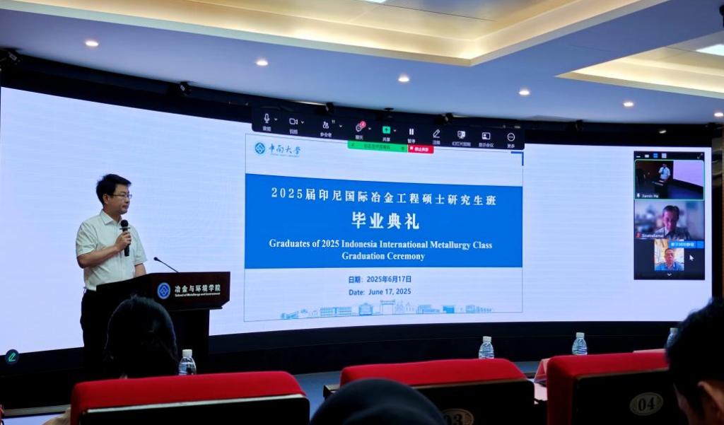 6月17日上午,2025届印尼国际冶金工程硕士研究生班毕业典礼在潇湘校区金贵楼520会议室举行,典礼以线上线下结合的方式同步进行印尼经济和工业基础设施部秘书长阿约迪亚·卡拉凯、格林美集团副总经理许鹏云、印尼教育捐赠基金会奖学金部主任德维·拉索、华人直播 党委书记成琼文、院长闵小波、国际教育学院副院长向学勇、国际合作与交流处副处长陈强、国家卓越工程师学院副院长陈爱良等相关负责人及全体毕业生齐聚一堂,共同见证这一重要时刻。毕业典礼由华人直播 副院长王亲猛主持。
